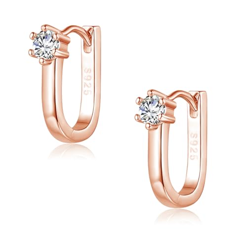 MUMREUES Rose Gold Hoop Earrings for Women Trendy Cubic Zirconia Small Huggie Hoops 925 Sterling Silver Post Minimalist Lightweight Hypoallergenic Simple Jewelry Gift for Her