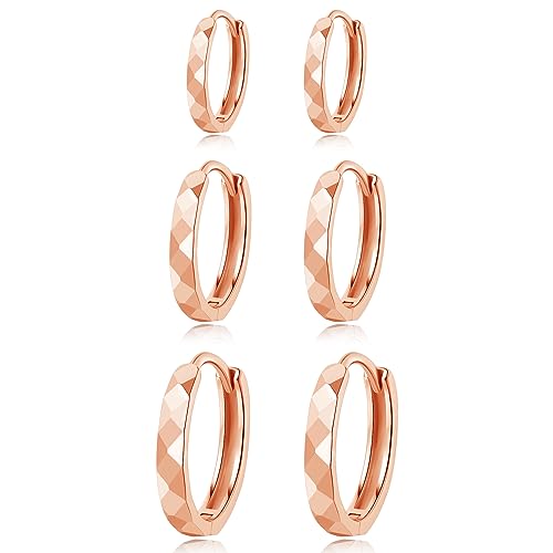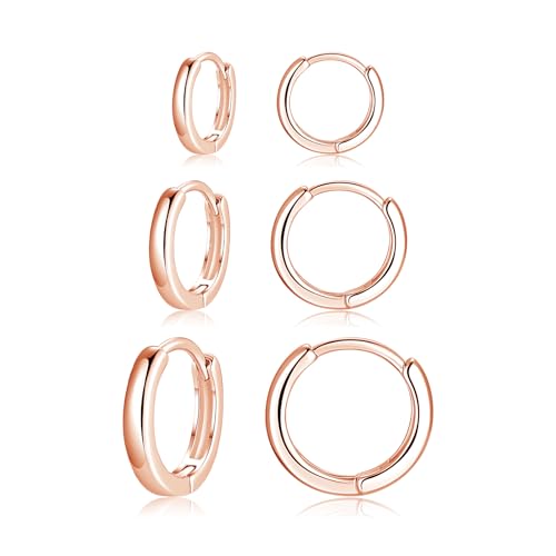 ankbrats 3 Pairs Sterling Silver Hoop Earrings for Women, Rose Gold Small Huggie Hoop Earrings Set, Hypoallergenic Sleeper Earrings 8/10/12mm