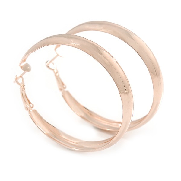 Large Polished Rose Gold Tone Hoop Earrings - 65mm Long