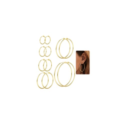 MILACOLATO Non Pierced Hoop Earrings For Women Clip On Hoop Earrings Silver Gold Rose Gold Spring Hoop Earrings Set Small To Big Hoop Fake Earrings Jewellery 20-60cm 6G
