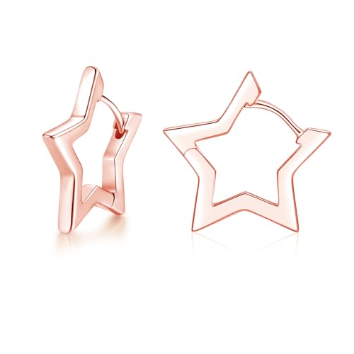 Loutade Silver & Rose Gold Star-Shape Hoop Earrings - Hypoallergenic Small Sleeper Huggie Earrings for Women