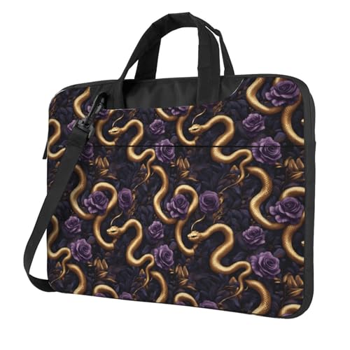 Purple Rose Gold Snake Print Laptop Case, 15.6 inch Laptop Sleeve Computer Bags for Laptops for Women Men with Shoulder Strap and Handle