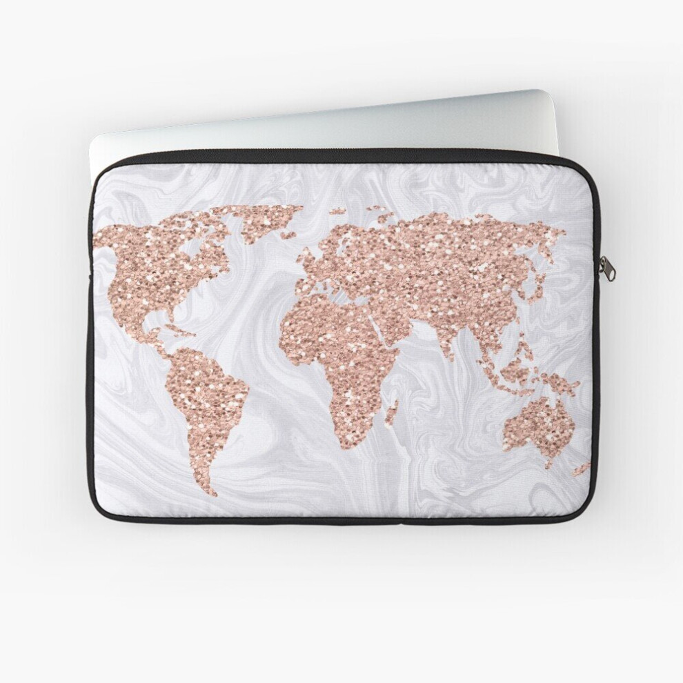 Laptop Sleeve Rose Gold World Map on Faux Marble 10 12 13 15 17 Inch Case Notebook Tablet Carrying Bag Cover