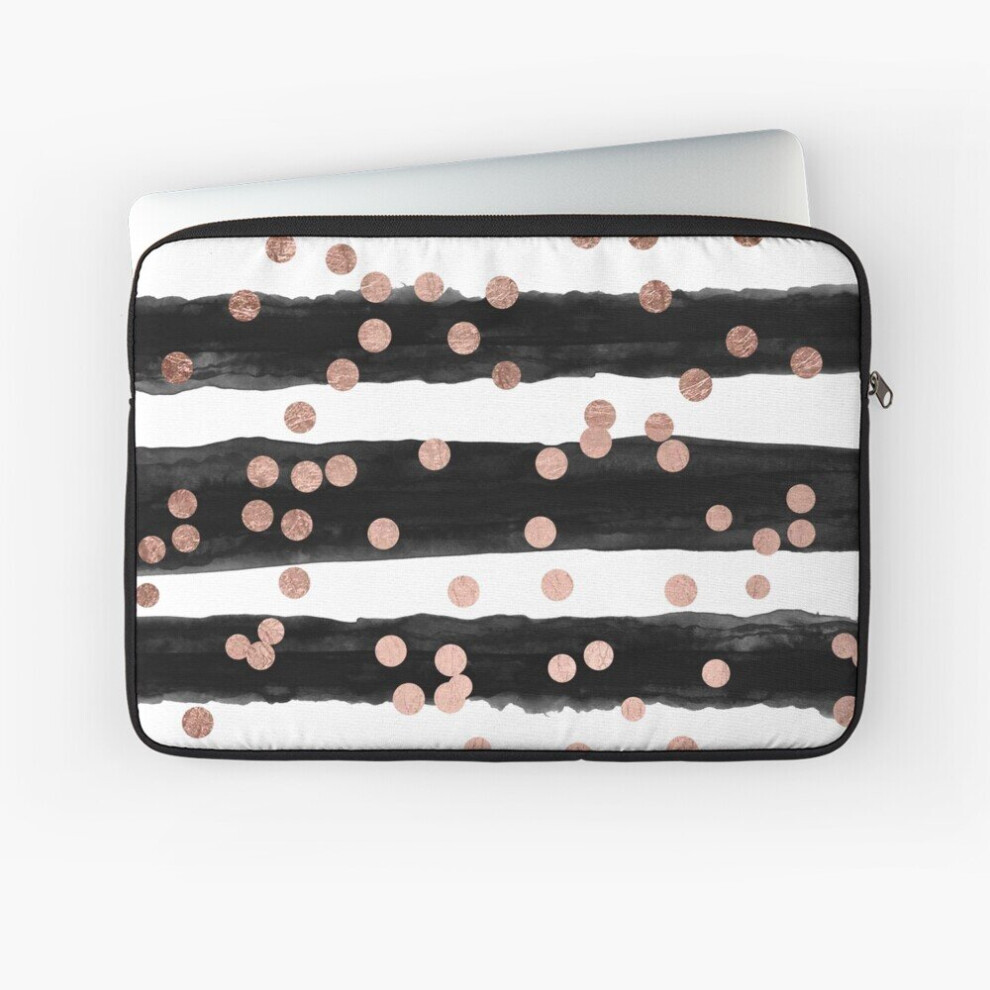 Laptop Sleeve Girly rose gold confetti black watercolor stripes 10 12 13 15 17 Inch Case Notebook Tablet Carrying Bag Cover