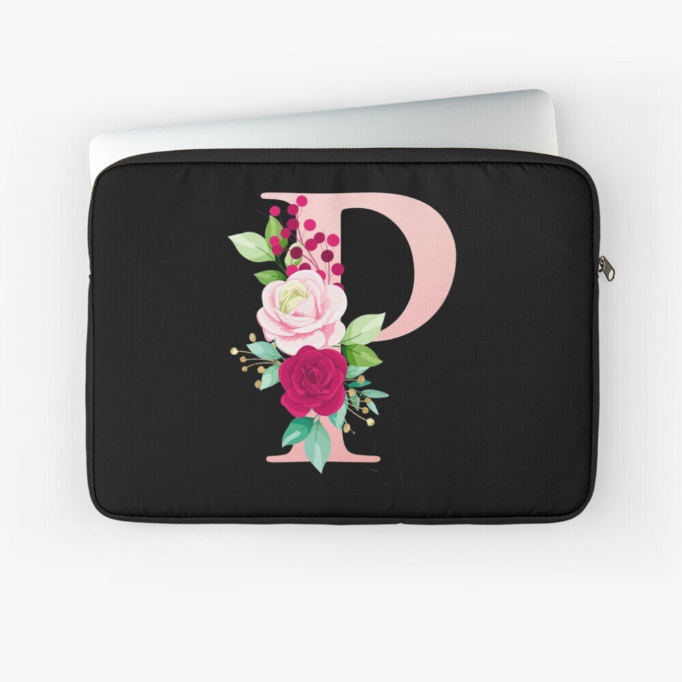 Laptop Sleeve Rose Gold Alphabet Letter P With Beauty Flower 10 12 13 15 17 Inch Case Notebook Tablet Carrying Bag Cover