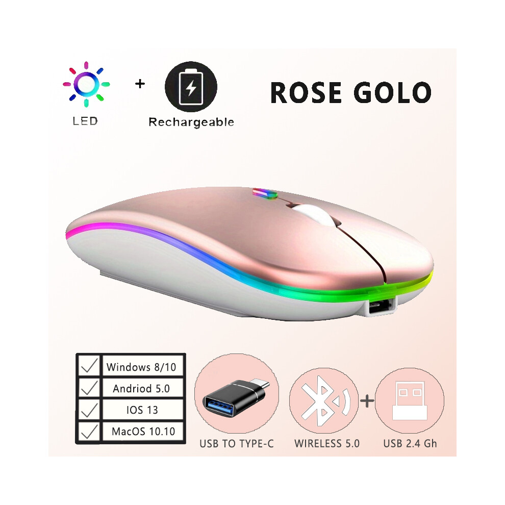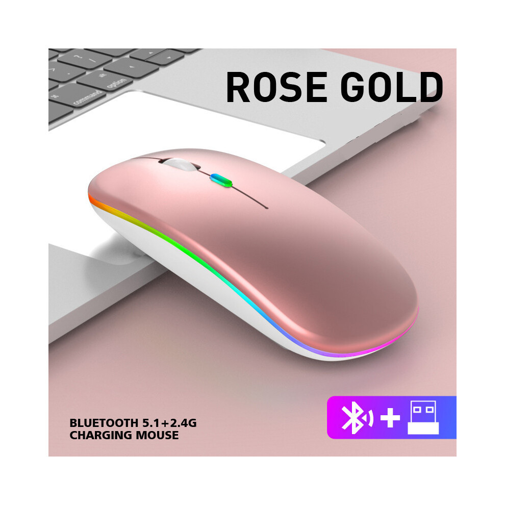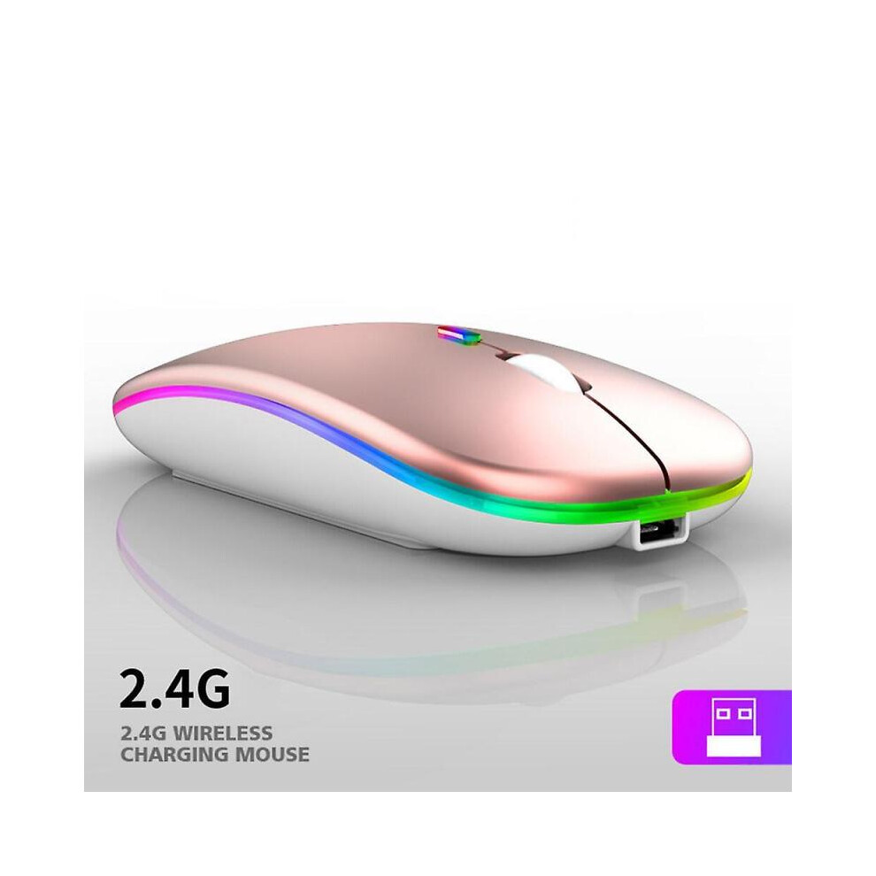 (rose gold) Rechargeable 2.4G Wireless Mice Ultra Slim Silent Mouse 1600DPI RGB LED Backlit Mouse Ergonomic Mouse for Windows2000/XP/Vista/Linux/7/MAC