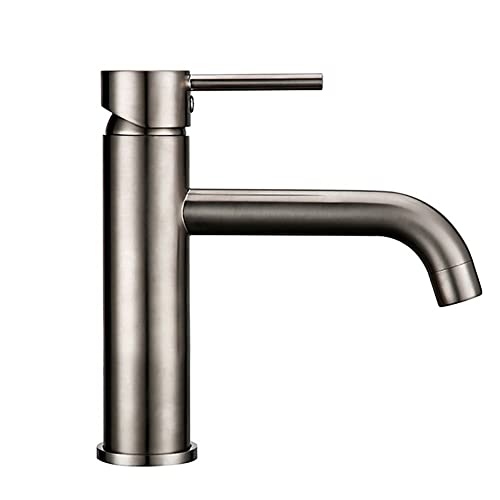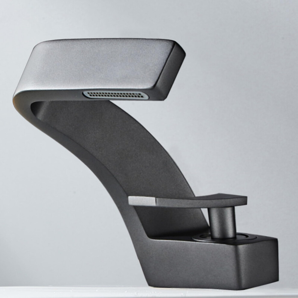 Brass Waterfall Basin Mixer Tap - Single Lever Bathroom Sink Tap, Rose Gold Finish, Gun Gray