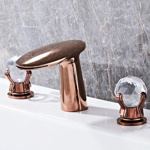 KKXXYQFC Basin Mixer Tap 3 Hole Bathroom Sink Taps Waterfall Hot and Cold Basin Tap for Bathrooms Rose Gold