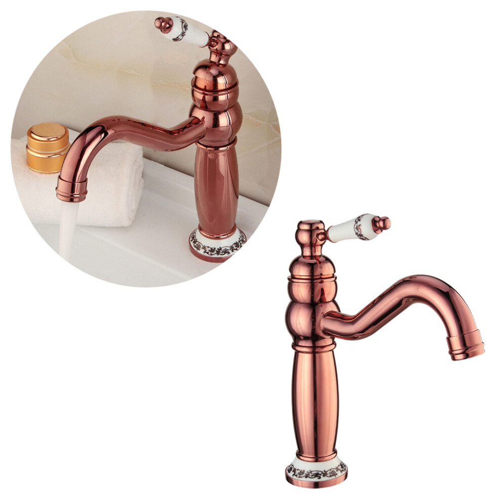 Brushed Rose Gold Bathroom Basin Faucet Cold and Hot Mixer Water Tap Deck Mounte