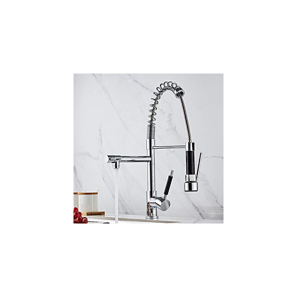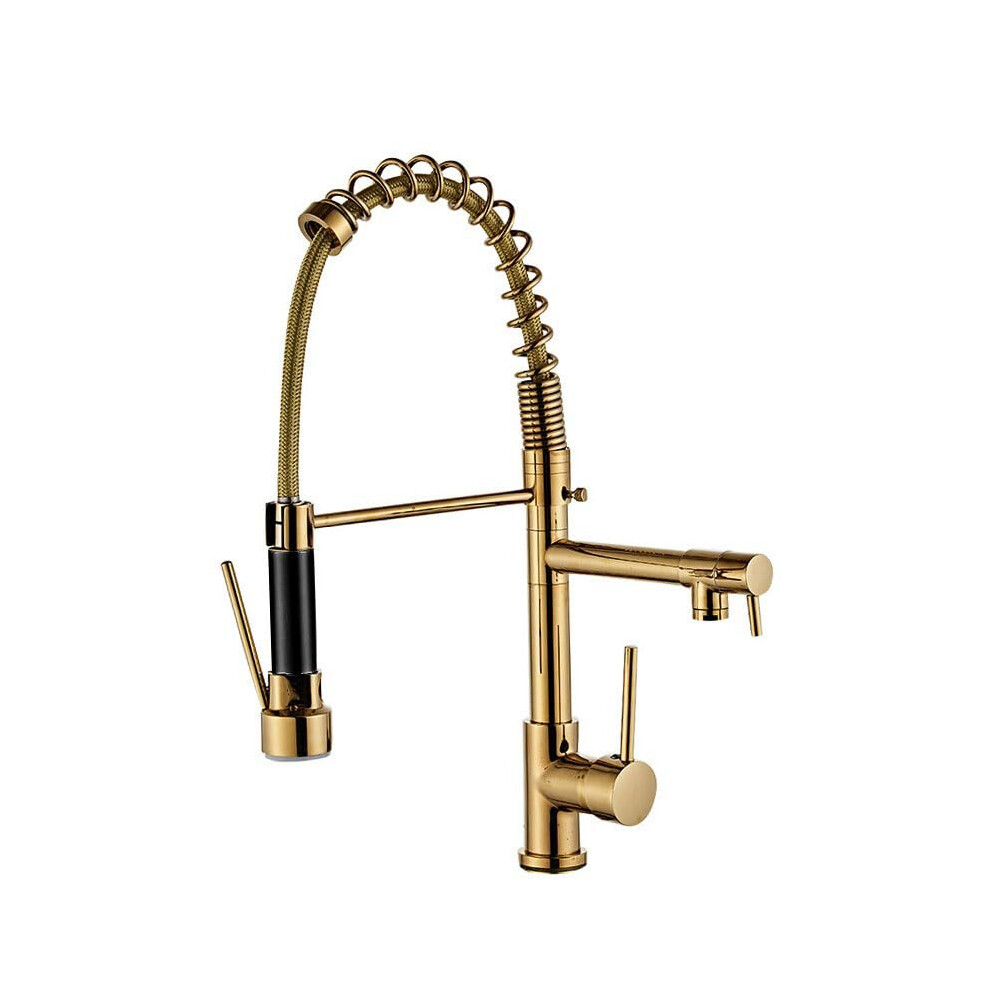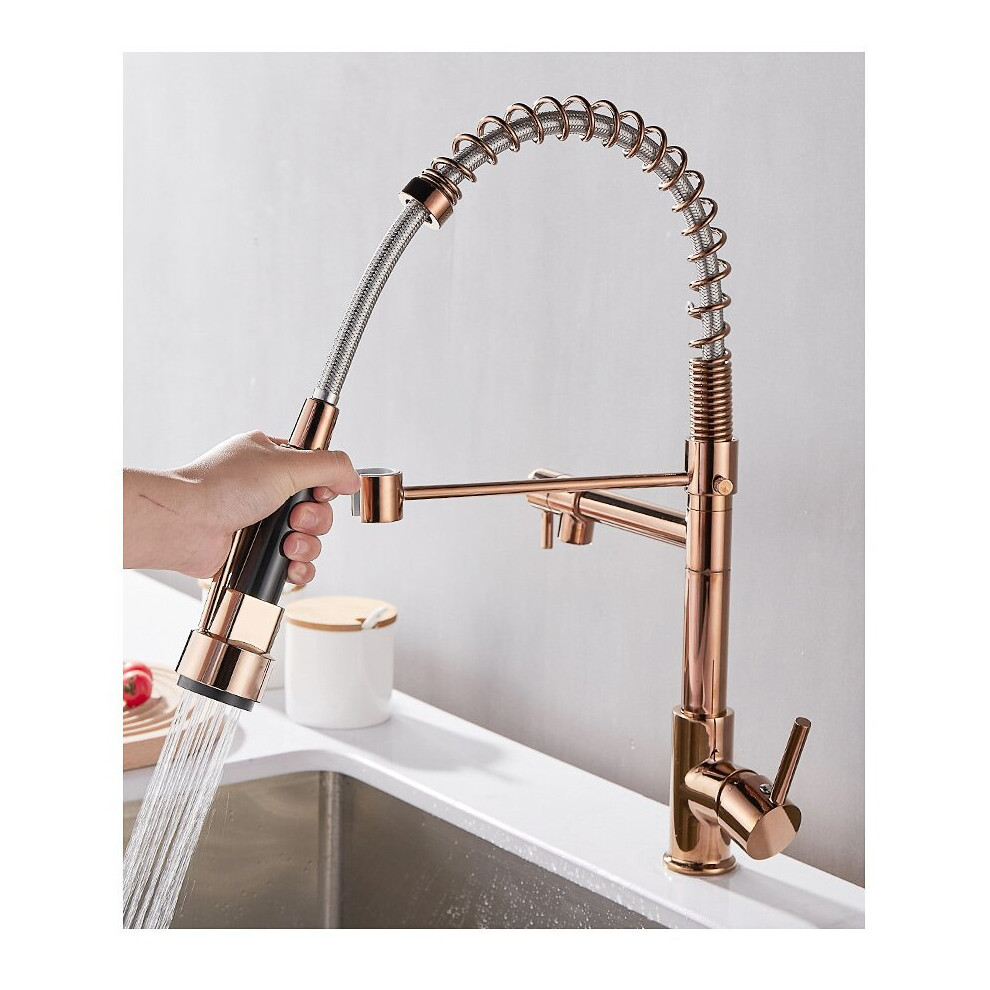 Spring Kitchen Mixer Taps, 1Hole Extendable Shower, Kitchen Sink Tap with Two Spouts, 360 Swivelling Single Lever Mixer Tap, Rose Gold, Gold