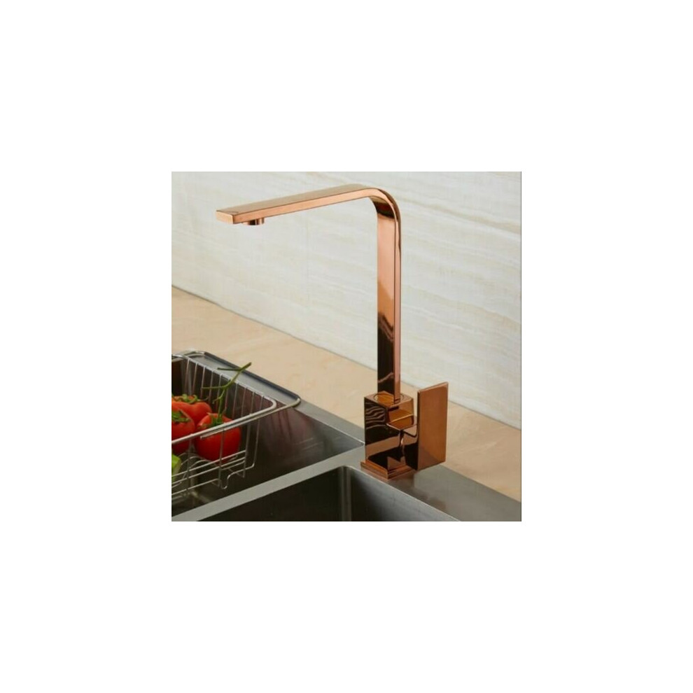 Rose Gold Kitchen Tap Mixer Faucet Single Lever Deck Mounted Brass Tap