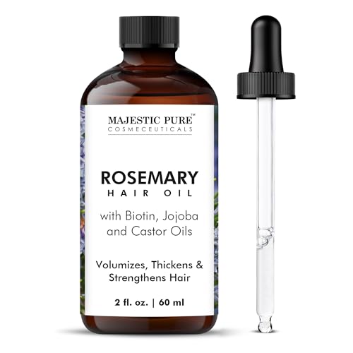 MAJESTIC PURE 100% Pure Rosemary Oil For Hair Growth Infused With Biotin | Hair Strenghtening Treatment | Nourishing & Volumizing | With Jojoba Oil & Castor Oil | Non GMO Verified | 2fl oz