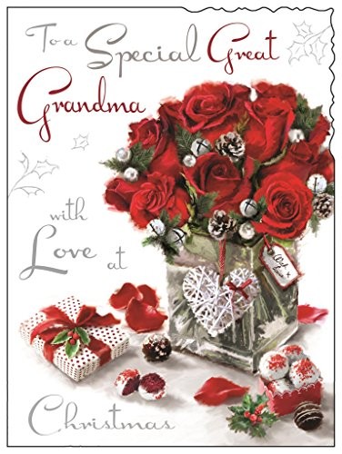 Great Grandma Christmas Card - Red Roses & Chocolates 7.25" x 5.5"
