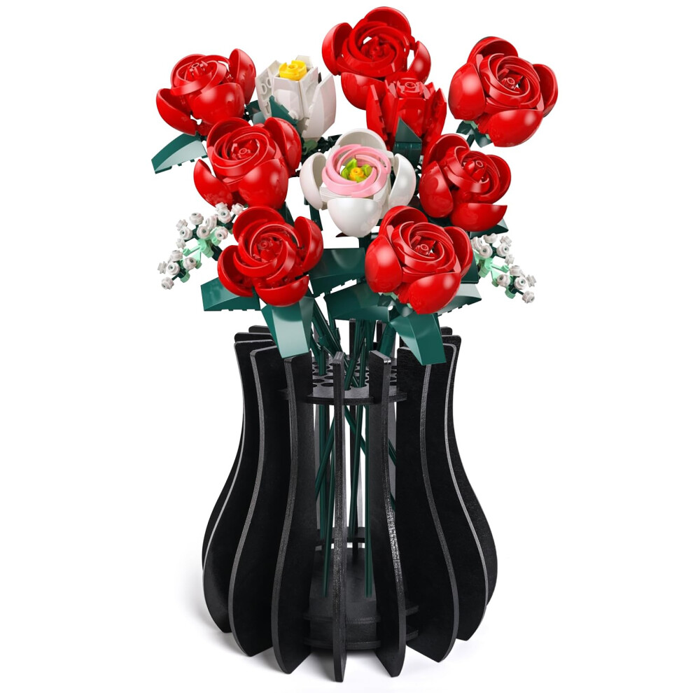 Icons Roses Flower Artificial Plant Building Set Bouquet Home Décor Accessory for Adults Fit lego
