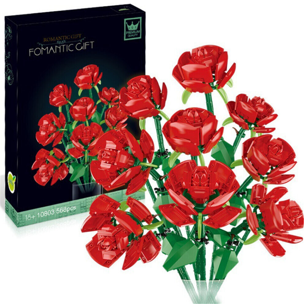Roses Flower Building Blocks Decoration Toys Gifts Fit Lego 9PCS Set