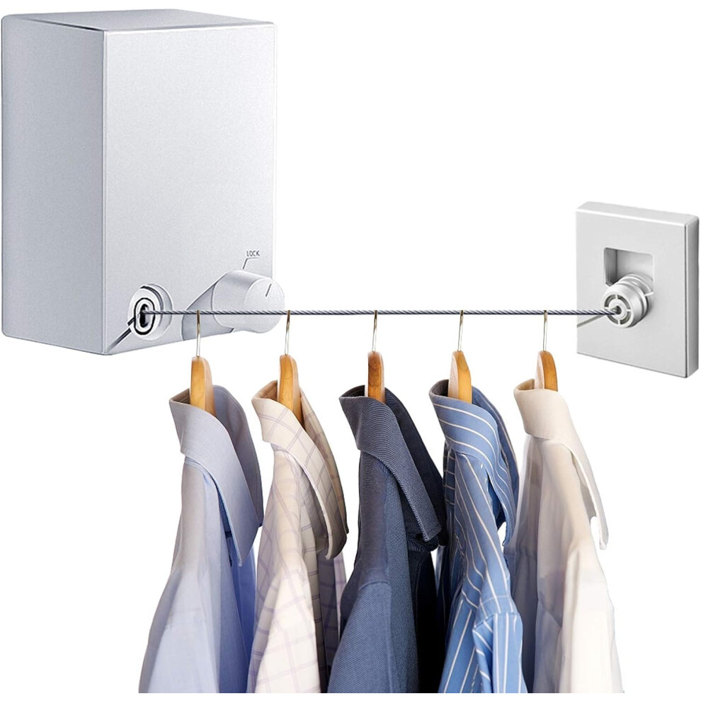 Heavy Duty Stainless Steel Retractable Clothesline, Anti-off U-shaped Buckle for Security, Rotary Lock Switch for Custom Lengths, Suitable for Indoor