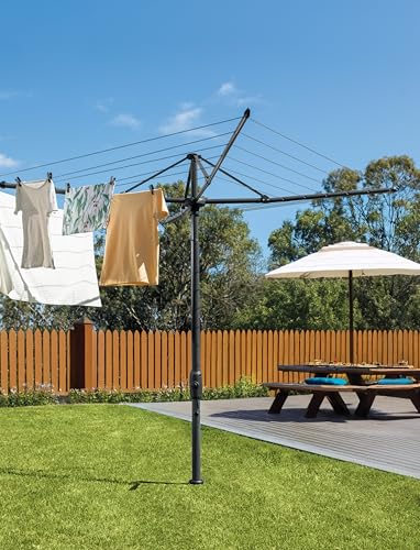 RANRHA 60M Heavy Duty Rotary Clothesline – 240cm Drying Space, 360° Rotating Outdoor Laundry Airer with Ground Spike & Cover – Foldable, Weather-Resistant, Easy Installation