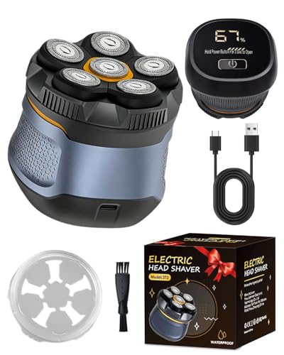Skull Shavers for Men, 7D Bald Head Razor, 6-in-1 Wet & Dry Rotary Shaver, IPX7 Waterproof Electric Clipper With LED Display, Rechargeable