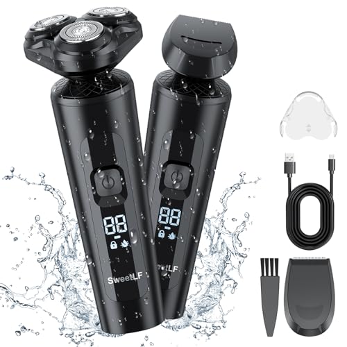 SweetLF Men's Electric Razor, Wet & Dry, Cordless, Rechargeable, Rotary Shaver with Sideburns Trimmer, IPX7 Waterproof, LED Display, Ultra Lightweight for Travel
