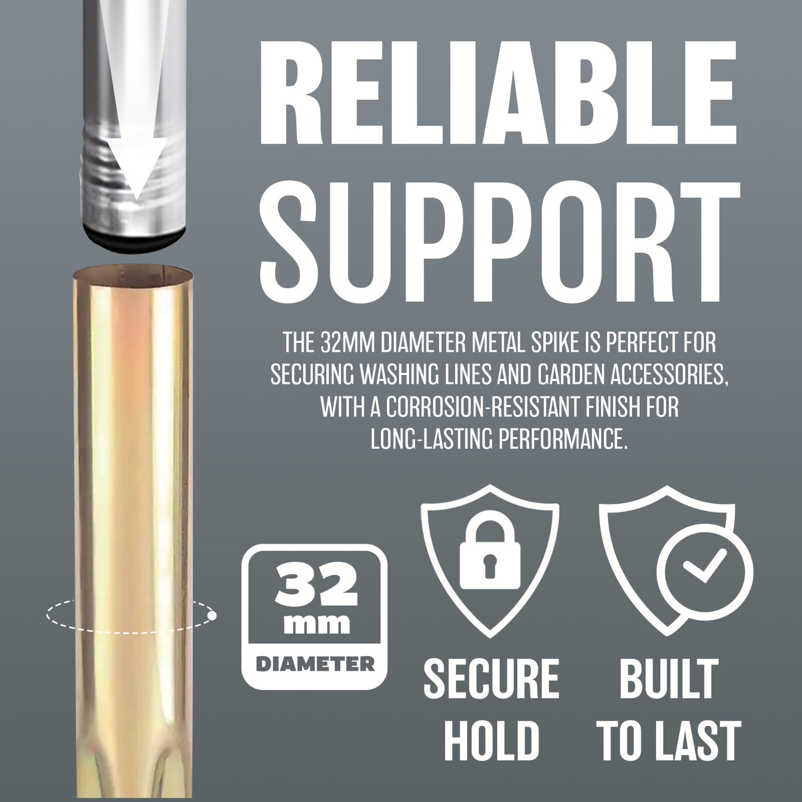 Rotary Washing Line Spike with 2x Plastic Adapters (32mm & 40mm) | Multi-Fit Ga