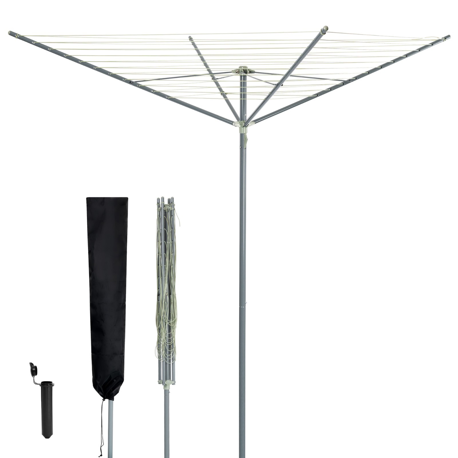 WALGREEN- 50m Rotary Washing Line- 4 Arm Design with Adjustable Height- Clothes Line for Efficient Drying- Outdoor Washing Line Spike with Ground Socket & Protective