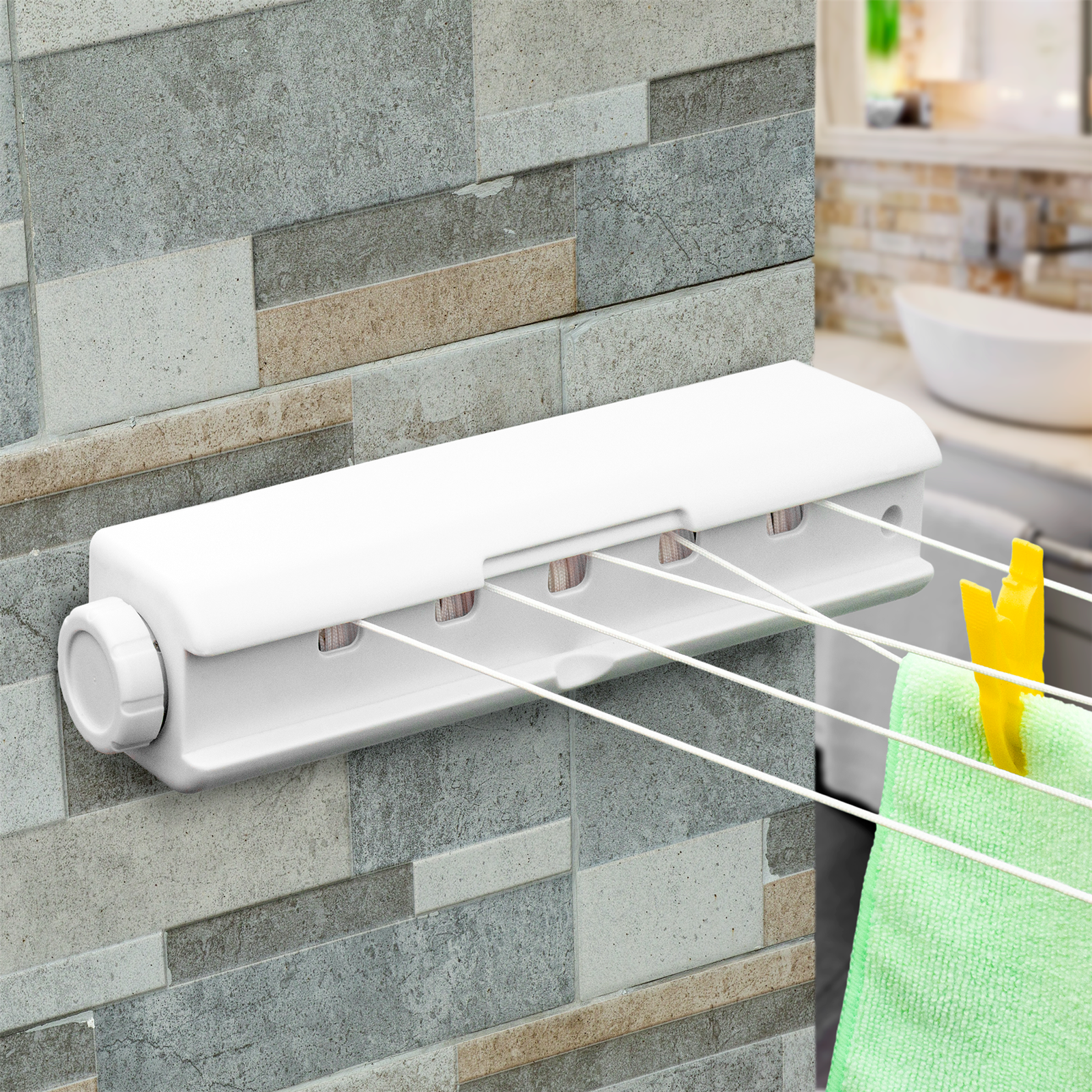 LIVEHITOP Retractable Washing Line, Wall Mounted Extendable Clothes Line Non-Sa