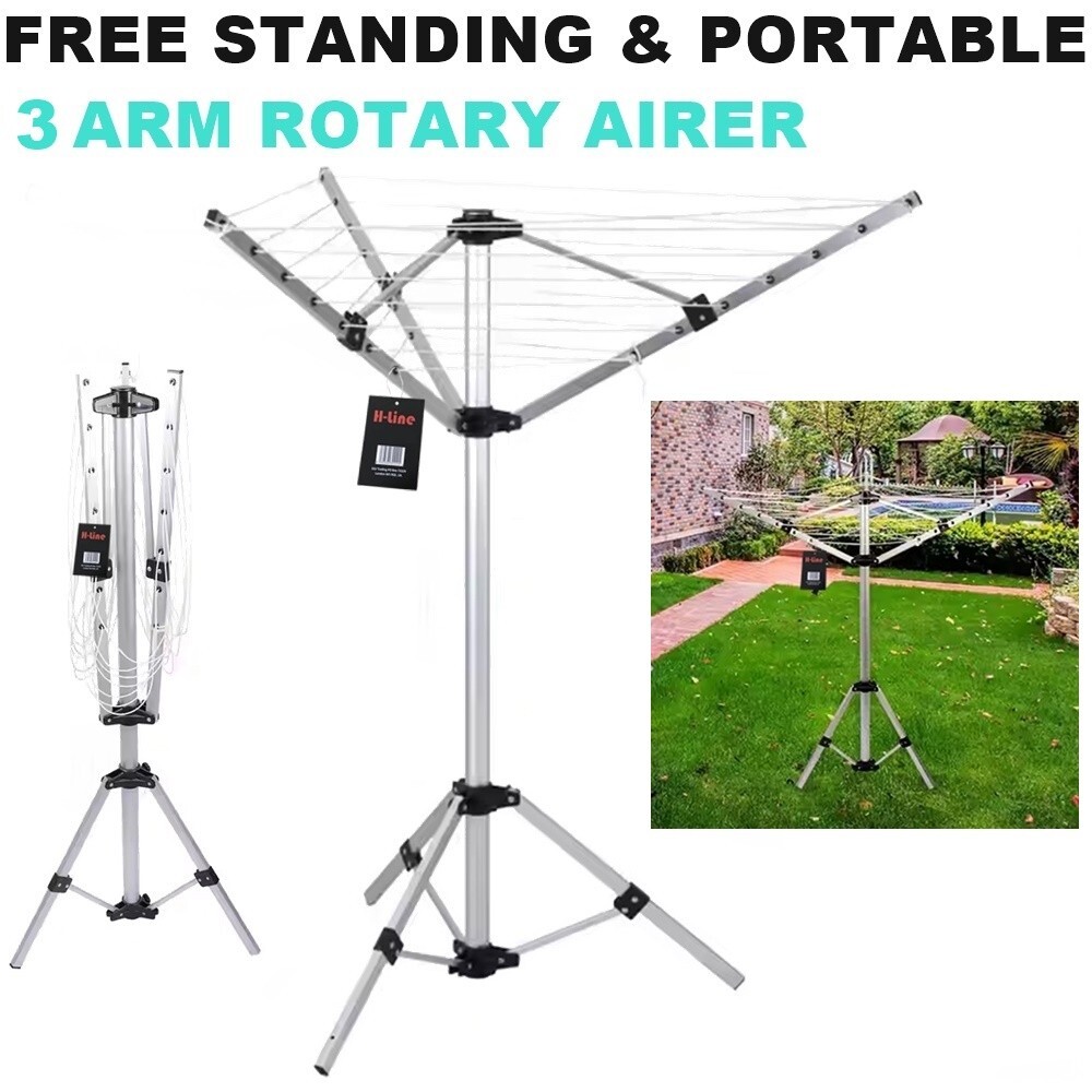 3 Arm 16M Portable Free Standing Rotary Clothes Washing Line Airer Laundry
