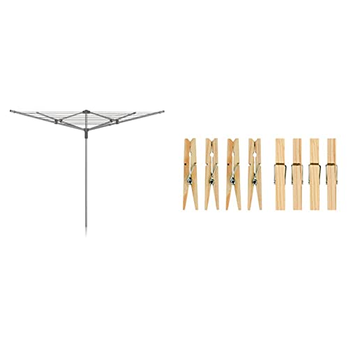 Addis 40 m 4 Arm Rotary Washing Line (Grey) Multiple Tension Adjustment, Folding Outdoor Rotating Clothes Dryer & Ground Spike MOB, Metallic & 36 Hardwood Clothes Pegs