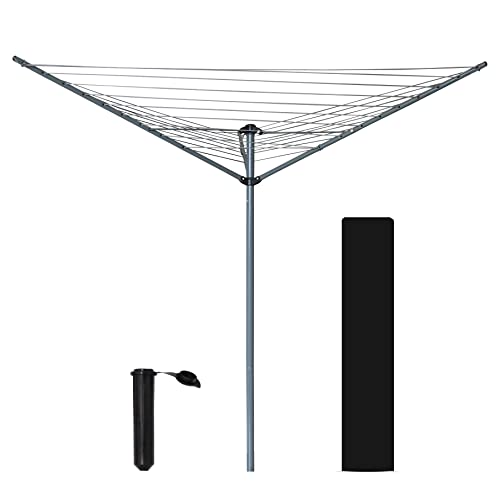VOUNOT® Rotary Washing Line 50m Heavy Duty Adjustable Height Levels Rotating Clothes Dryer 4 Arm Outdoor Clothes Airer with Protective Cover and Ground Spike, Grey