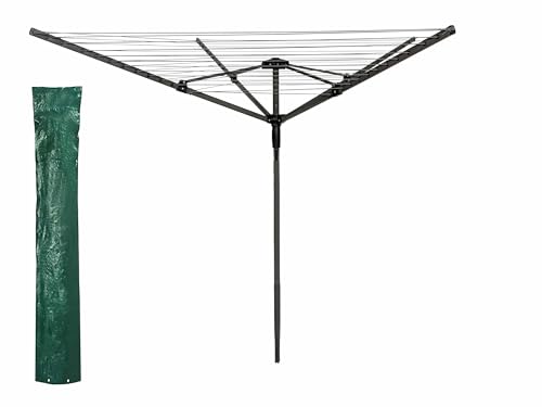 Byinone Rotary Washing Line | 50m Rotating Heavy Duty Clothes Airer Outdoor | Garden 4 Arm Rotary Washing Line | with Ground Spike 3 colour options + Cover (Dark Grey)