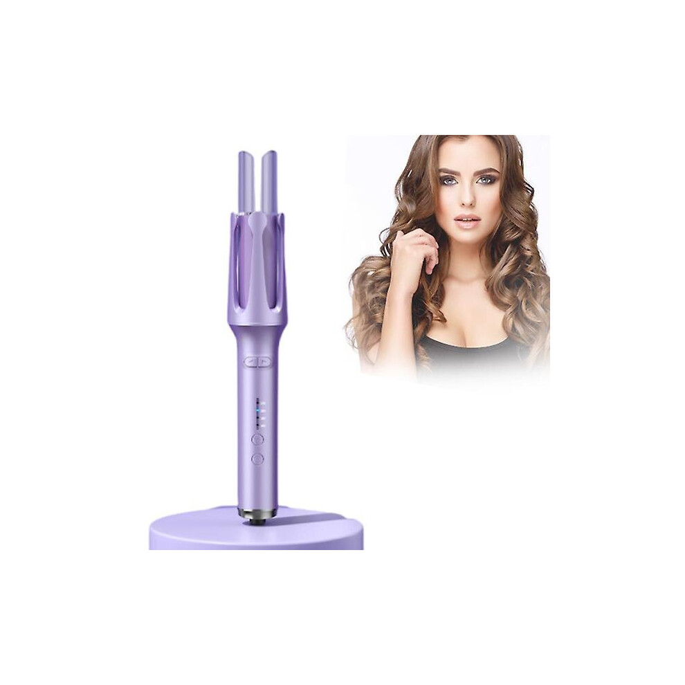 (Purple) Cordless Automatic Hair Curlers Auto Rotating Wireless Curling Iron
