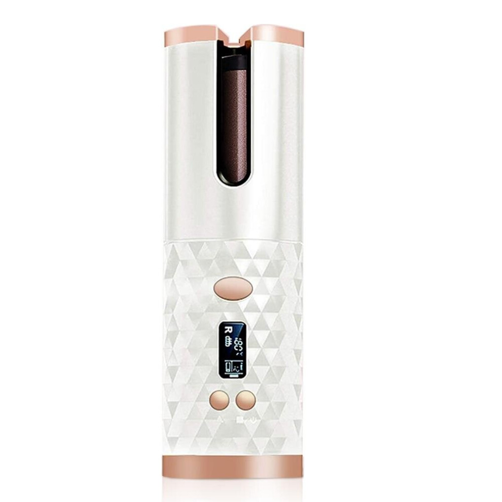 (White) Cordless Hair Curler Ceramic Curly Rotating Curling Iron Curls
