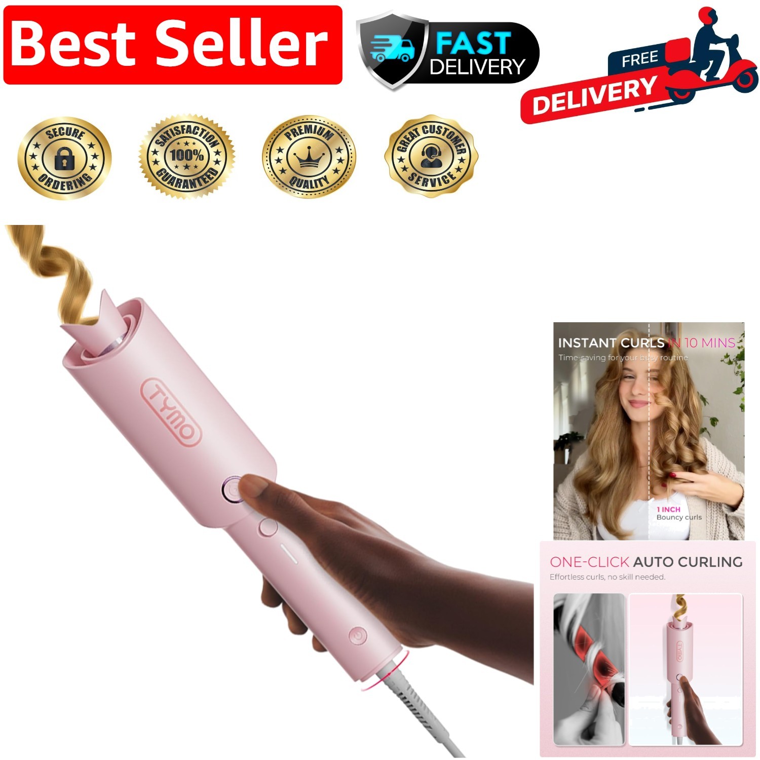 TYMO CURLPRO Automatic Rotating Curling Iron Beach Waves Curling Wand Portable