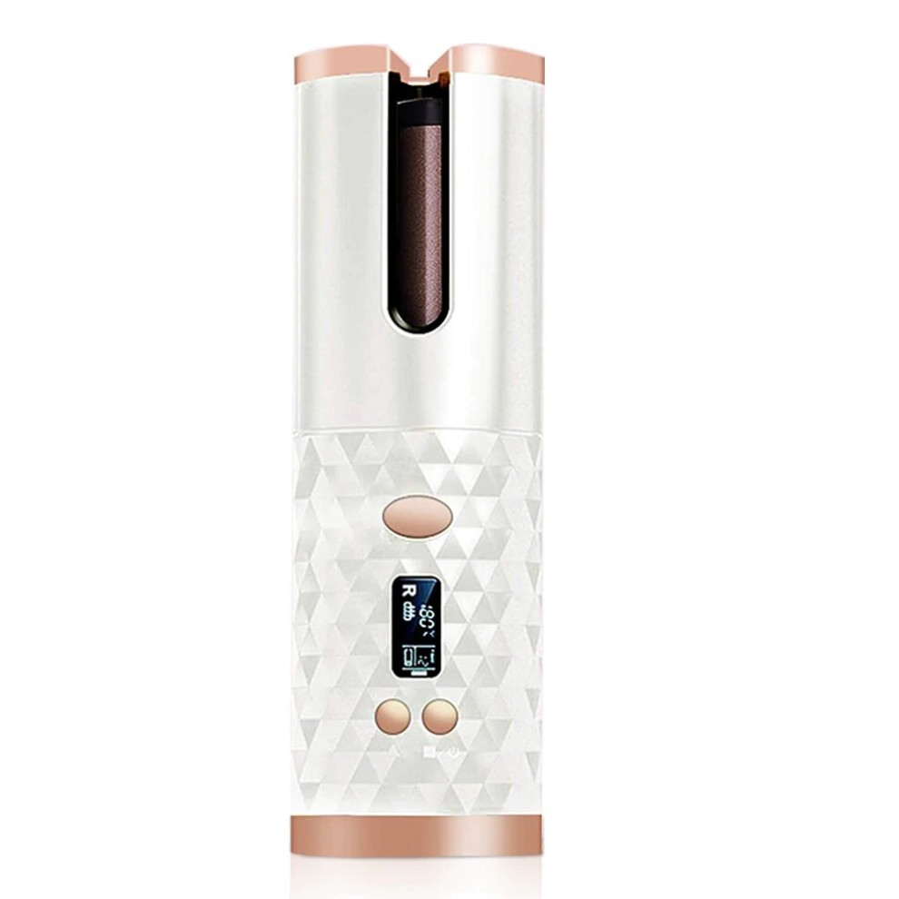 (White) Cordless Automatic Hair Curlers Auto Rotating Wireless Curling Iron