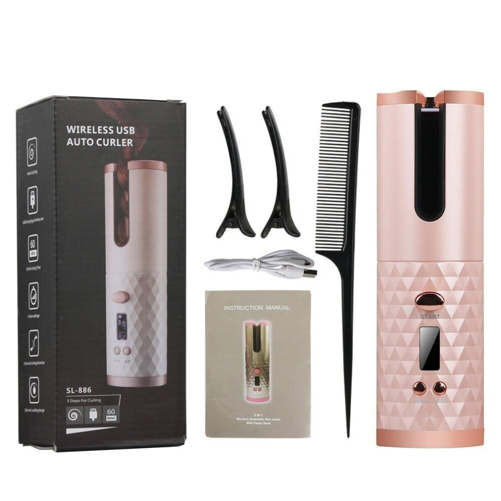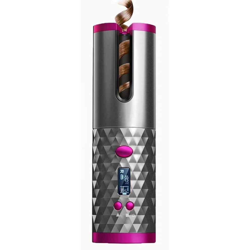 (Pink) Cordless Automatic Rotating Hair Curler Iron