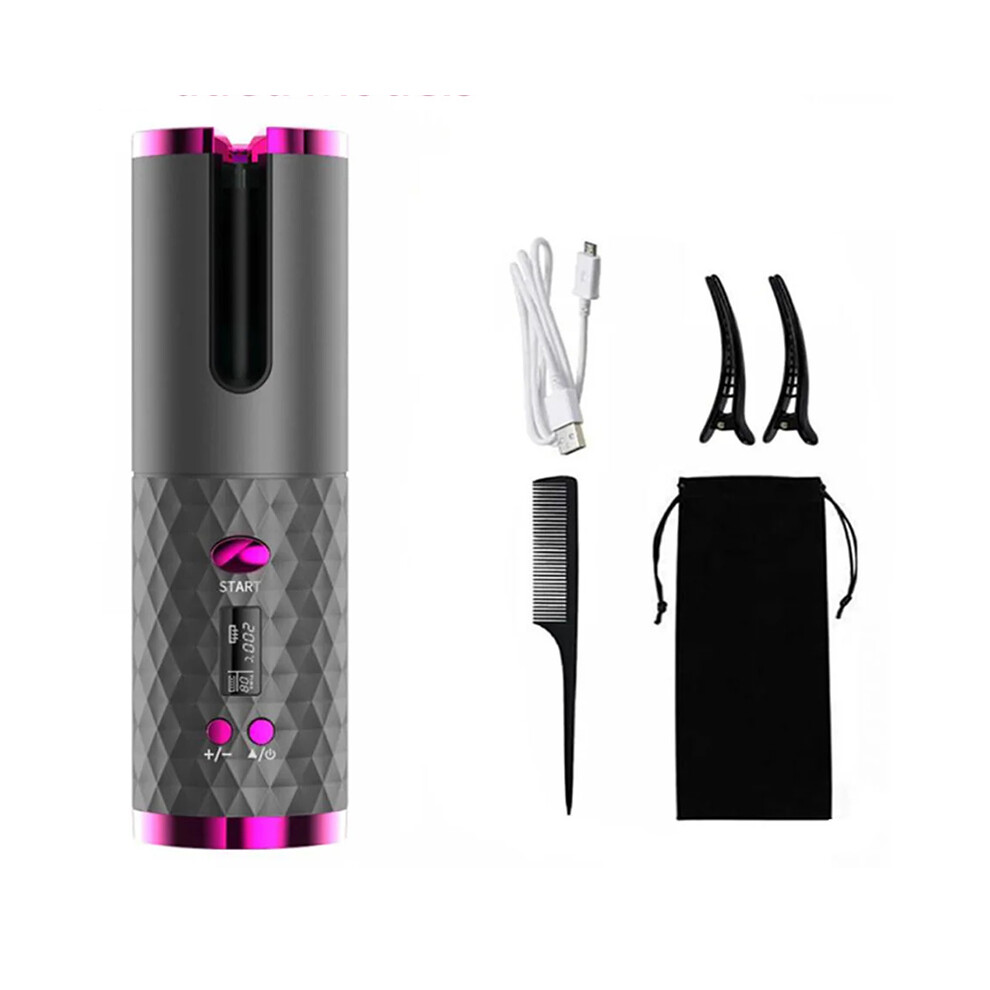 (Gray) Cordless Automatic Rotating Hair Curler Iron