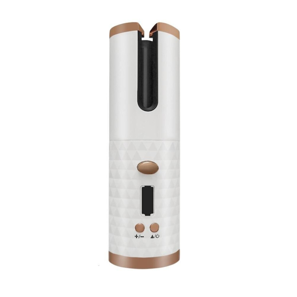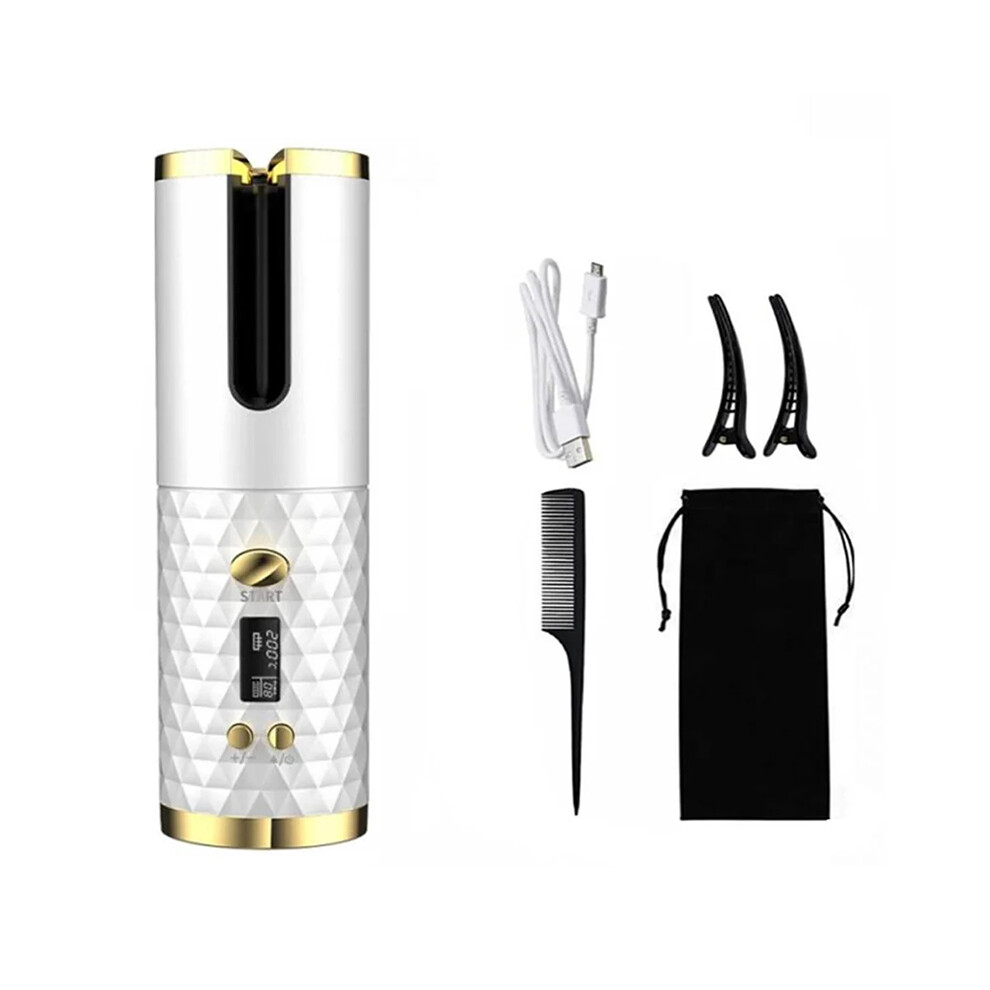 (White) Cordless Automatic Rotating Hair Curler Iron