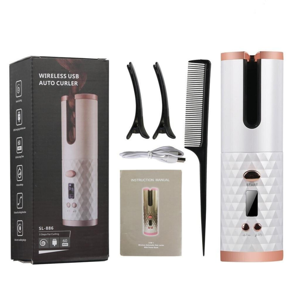 (White) ((Rose-gold Electric Auto Rotating)) Cordless Automatic Hair Curler | Portable Curling Tongs