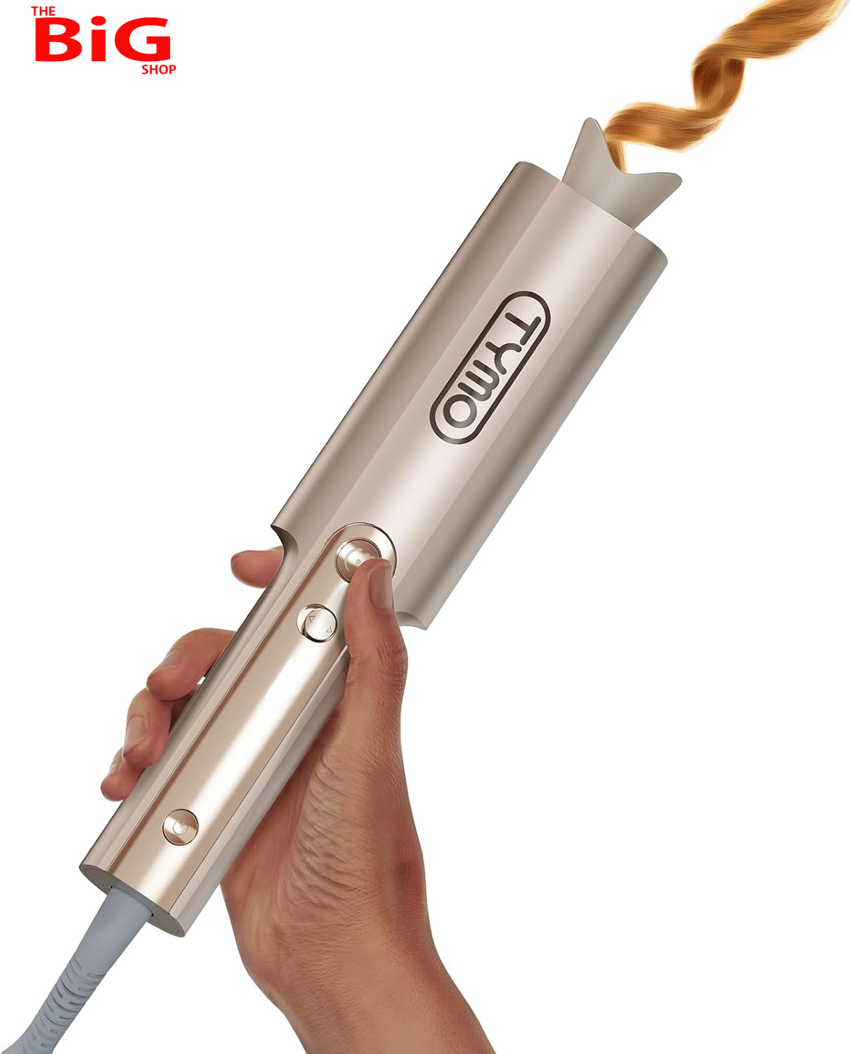 TYMO CURLPRO Automatic Rotating Curling Iron - Beach Waves Curling Wand, Portable Hair Curler, 500 Million Ionic, Dual Voltage & Lightweight for Travel, Ceramic Coating, Metallic Gray 1.25 inch