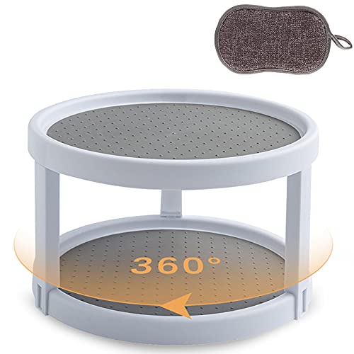 2 Tier Rotating Spice Rack Organizer For Kitchen Cabinet Storage Gray White