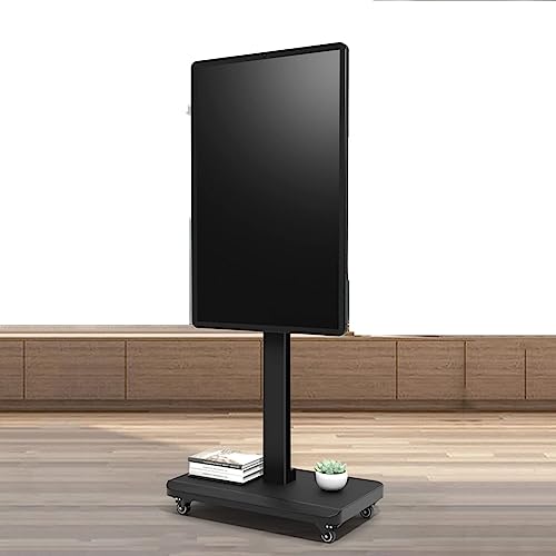 HYJYGM Rotating TV Stand - Mobile TV Cart on Wheels for 32-65 Inch TVs, Height Adjustable Portable Floor Stand, Horizontal and Vertical Screen Switching from 0-90°(Black)