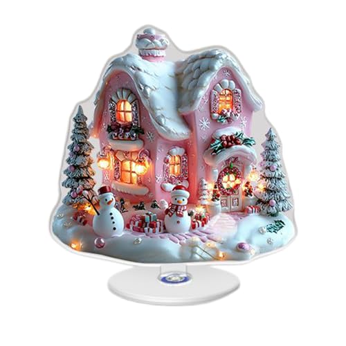 2D Acrylic Christmas Desk Decoration - Table Centerpiece with Rotating Base Ferris Wheel Snow House Holiday Decoration for Winter Party Shelving Fireplace TV Stand Entrance Living Room