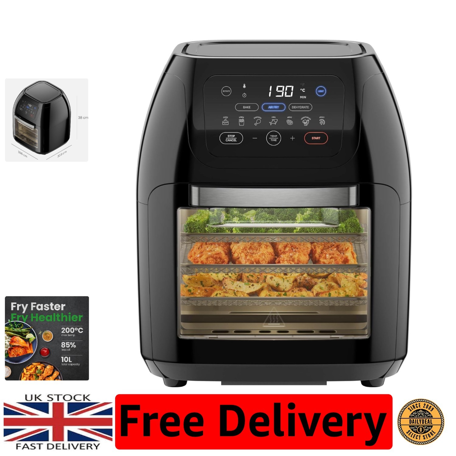 Digital Air Fryer Rotisserie Halogen Oven 10L Healthy Cook