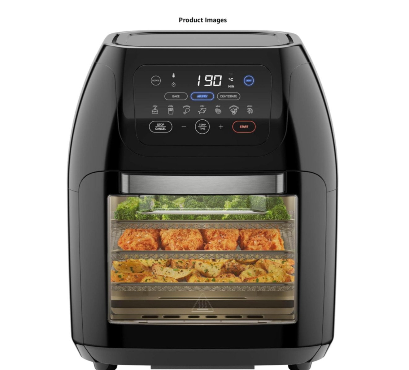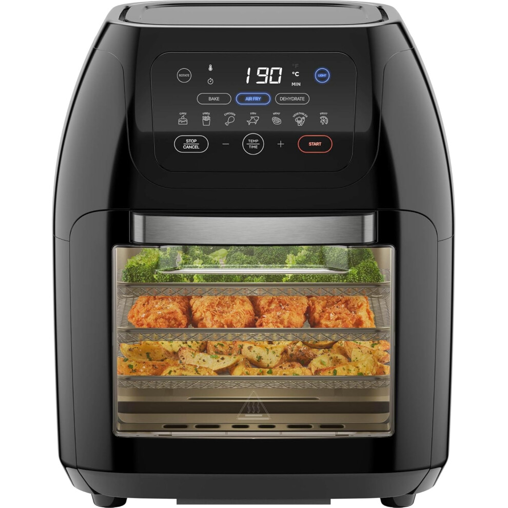 JML 12L Air Fryer Oven - 4 in 1 Rotisserie Airfryer to Cook, Fry, Roast, Bake and Dehydrate, No Oil Fry, Large Touchscreen, 10 Pre Set Modes, Reheat