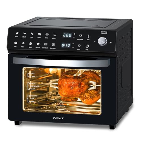 Innoteck 26L Air Fryer Oven Stainless Steel Rotisserie Dual Cook Touchscreen Presets Air Fryer with Rotisserie 11 Cooking Modes 360° Hot Air Circulation Airfrying Oven for Home Kitchen & Family Use