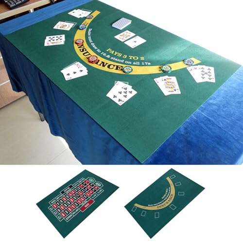 Double-sided Poker Layout Mat - Blackjack and Texas Hold' em Available Table Mat, Craps and Roulette Table Felt, Green Fabric Mat Table Cover Equipment