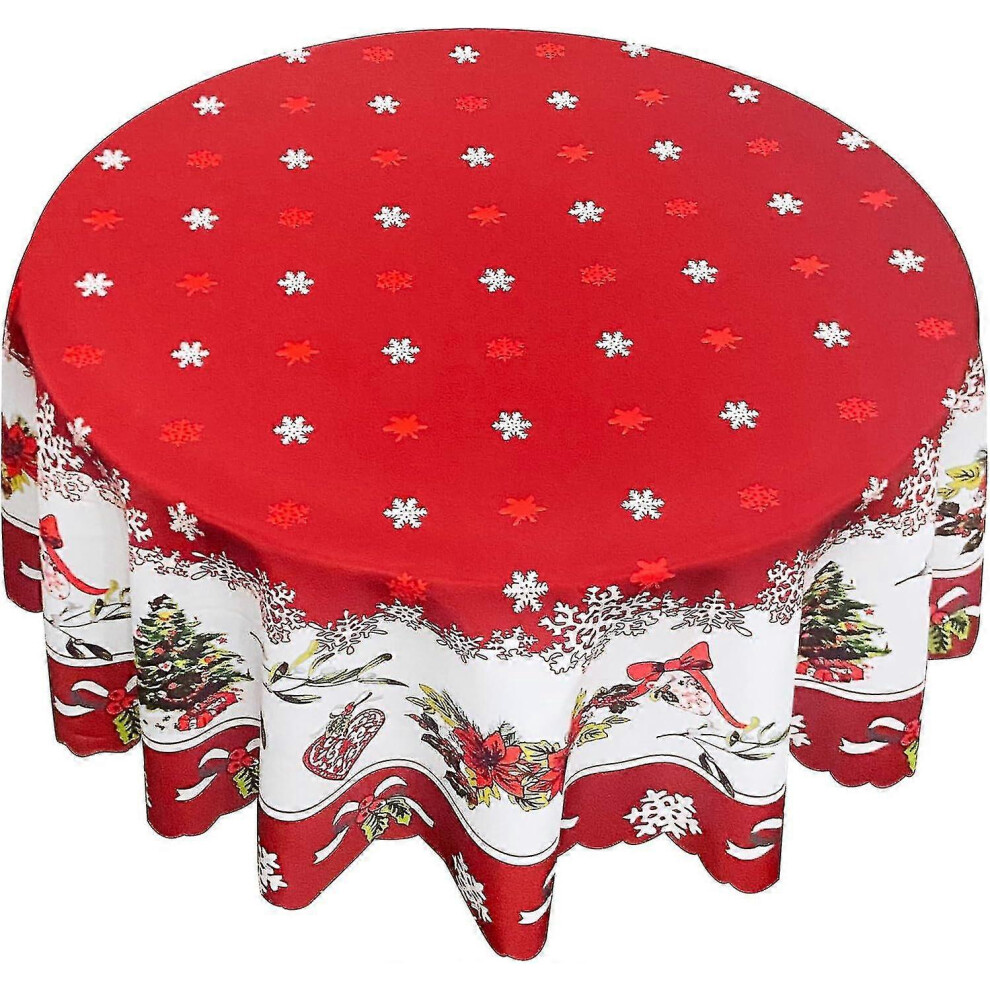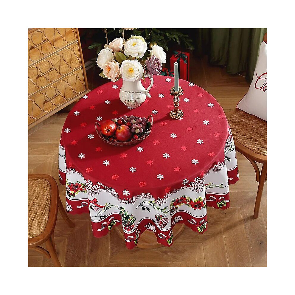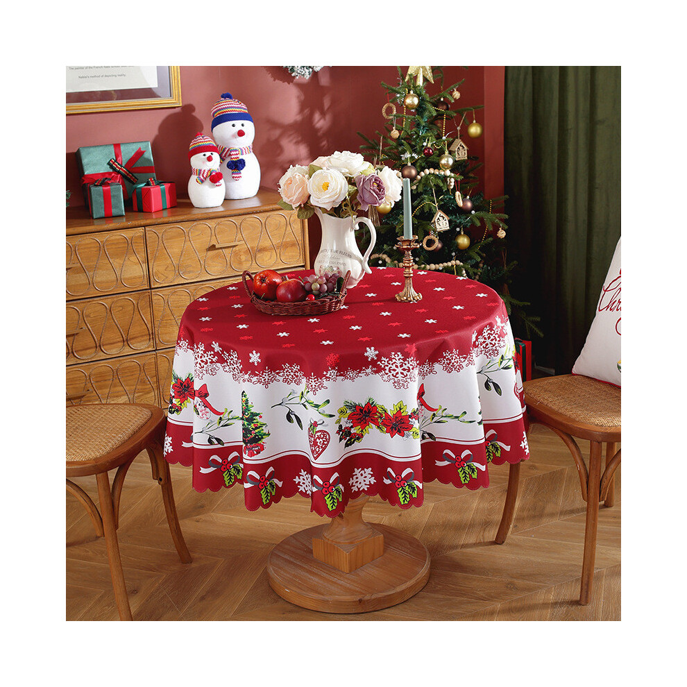 Festive Holiday Table Cover Christmas Round Tablecloth Waterproof Polyester Fabric Red Xmas Table Cloth Reusable Easy Clean for Dining Kitchen Party D