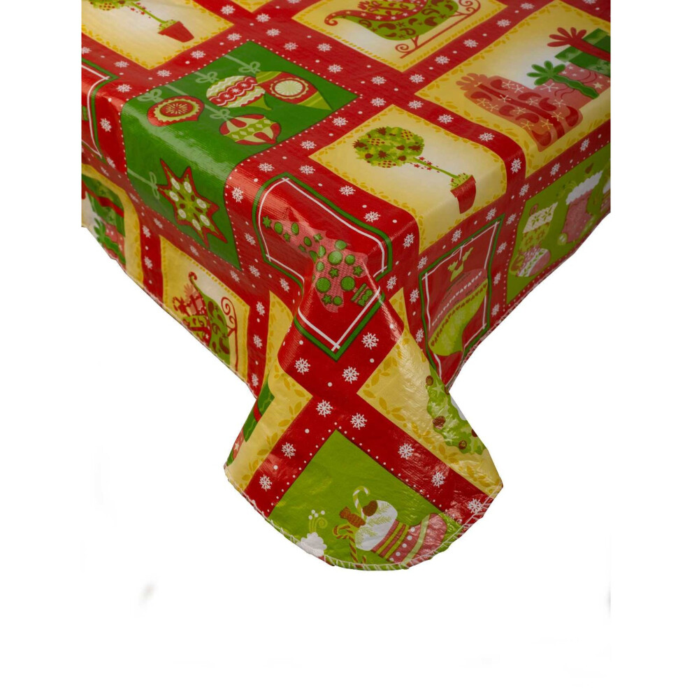 Mr Crimbo 70" Round Christmas Tablecloth Green Red Holly Polyester Fabric