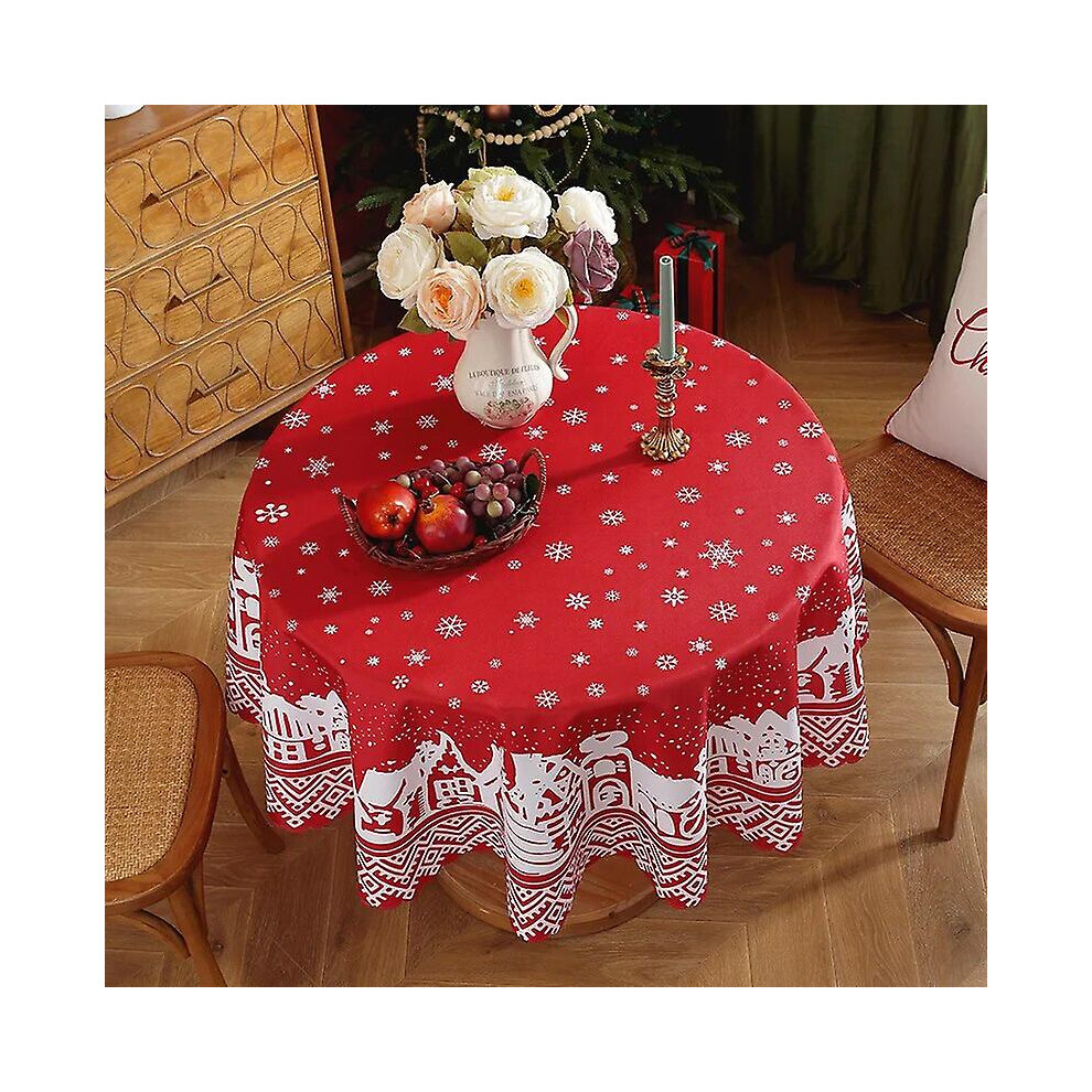 Christmas Round Tablecloth Waterproof Polyester Fabric Xmas Table Cloth Red Festive Holiday Decoration Table Cover Washable Reusable Easy Clean for