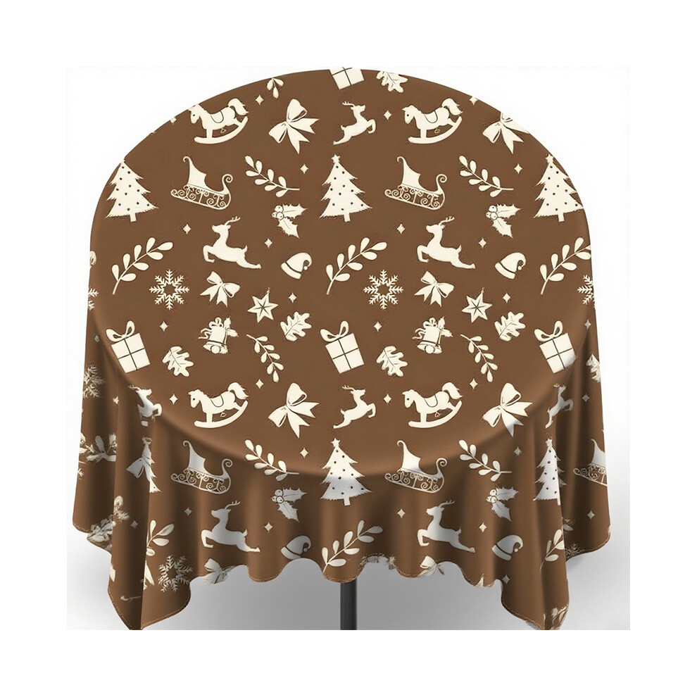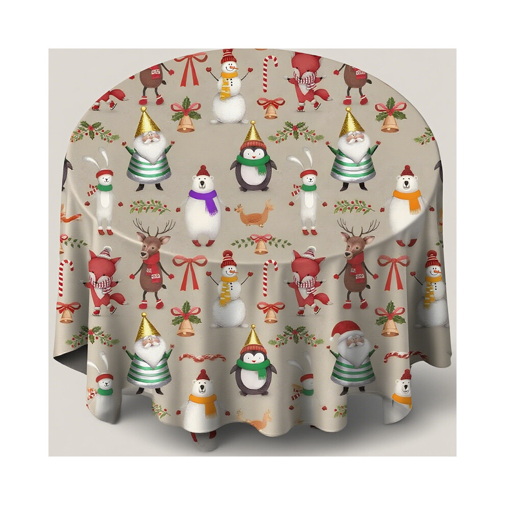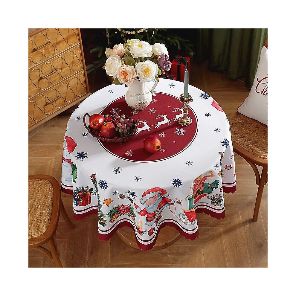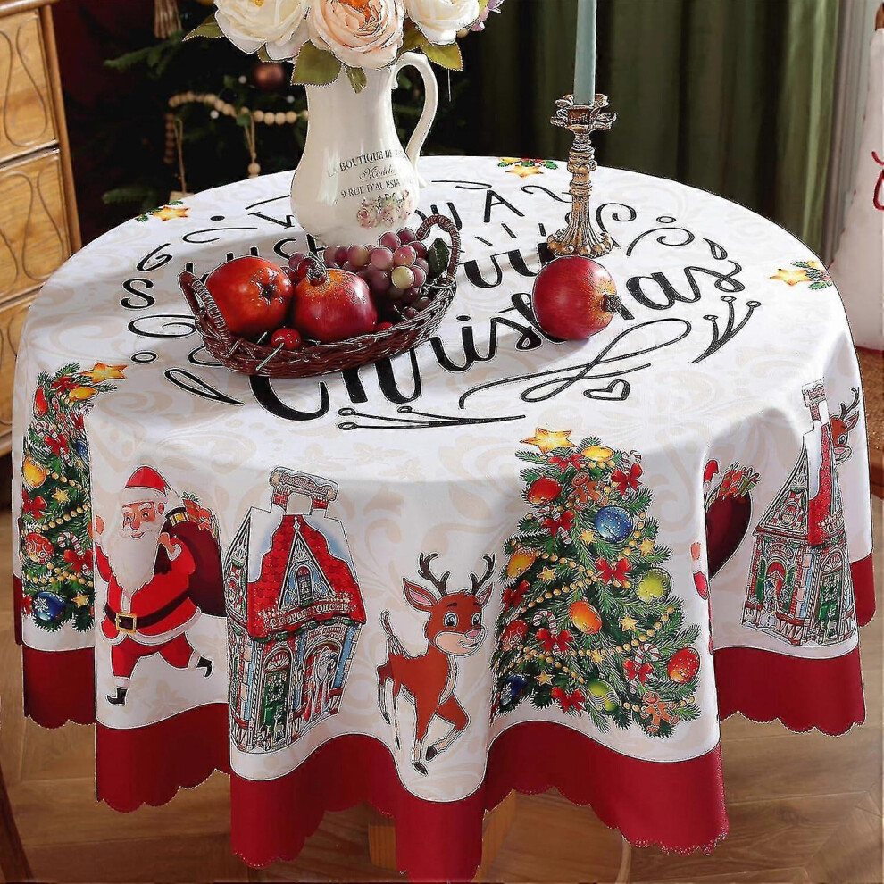 (E, 59 inches) Christmas Tablecloth Round Christmas Tablecloth Washable Christmas Tablecloth